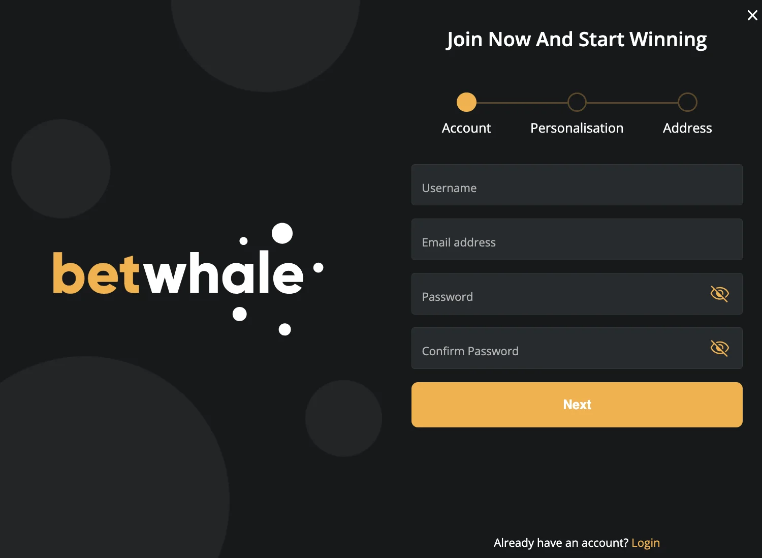 - Sign Up for a BetWhale Account. Head to the BetWhale website or download the betting app, and create your account by providing your details.