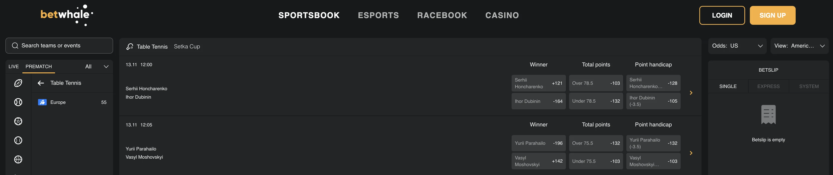 About Table tennis betting at Betwhale Sportsbook